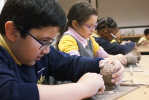 Year 4 have been busy in the Art Room- here are Willow Class hard at work creating their clay busts, inspired by classical Roman designs.